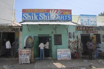 Shik Shik Arts es el ejemplo perfecto de cómo la guerra transformó las iniciativas artísticas en Somalia. Fundada en 1960, a día de hoy es un estudio de arte, una galería y una escuela del distrito de Hodan. La regentan Mohamed Hussein Sidow y sus cuatro hermanos, siguiendo la tradición de su padre, quien inició el negocio familiar. Durante muchos años, Shik Shik Arts diseñaron ropa, complementos, hicieron fotografías, carteles… Pero, aunque la actividad comercial se interrumpiera intermitentemente, se tuvieron que adaptar a la situación política del país, y se dedicaron al diseño de rótulos de tráfico. Hoy, los carteles comerciales vuelven a ser una de sus especialidades.