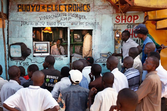 Kenianos siguiendo el resultado de las elecciones por la televisión, en las calles de Nairobi. Foto: Jerome Delay/Associated Press