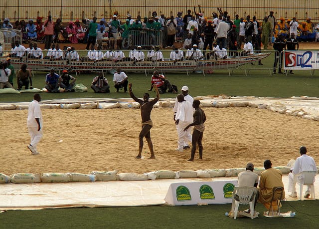 El Mundial de Fútbol celebrado en Sudáfrica en 2010 o la reciente Copa Africana de Fútbol, son algunas evidencias más de la capacidad de movilización social que tiene este deporte en África (y en gran parte del mundo) . Aunque si damos un salto y nos vamos a África Occidental, concretamente a Senegal, el fútbol encuentra un oponente claro: el laamb o la lutte senegalesse. O más bien, se podría llegar a decir que entre los senegaleses la lucha arrasa y deja de lado al supuesto deporte rey.
