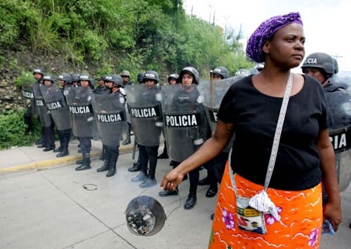 Foto tomada el pasado 28 de Agosto en el pueblo de Vallecito (Honduras), durante las protestas de comunidades Garífuna para reivindicar el derecho a las tierras que les han sido usurpadas