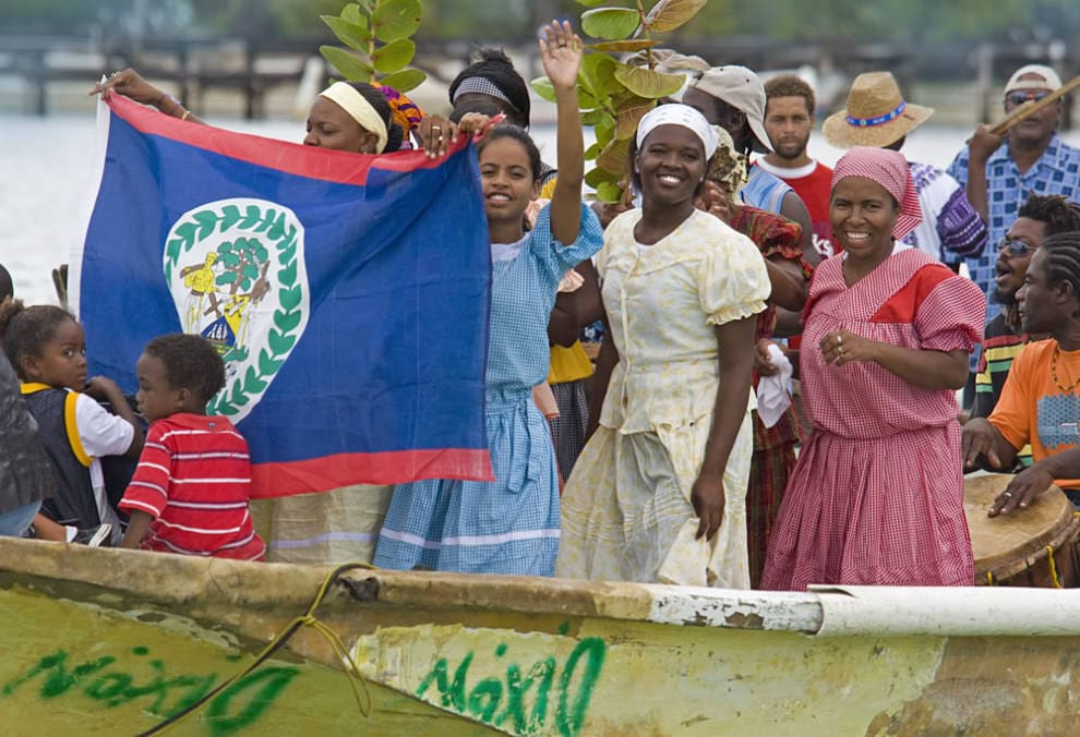 Garífunas en el Día del Asentamiento, celebración que reivindica su llegada a las costas de América Central después de que los ingleses, en el siglo XIX los expulsaran de la Isla de San Vicente.