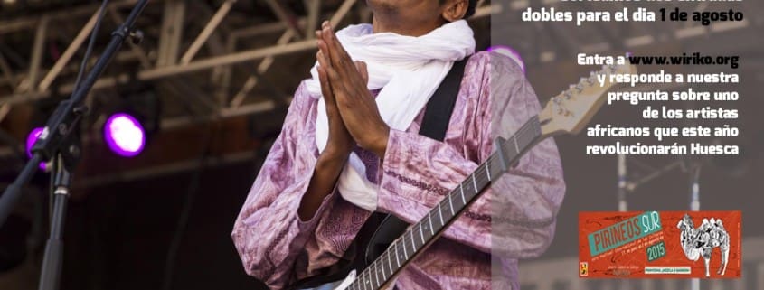 Y además de acercarnos a los artistas y creatividad africana de forma gratuita, Pirineos Sur regala a tod@s l@s lector@s de Wiriko dos entradas dobles para diferentes fechas. Hoy sorteamos las del 1 de Agosto, en las que nuestr@s premiad@s podrán disfrutar de estos artistas: